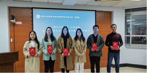 随后,主持人宣布此次会议正式开幕,在奏唱国歌后,best365官方中文网页版登录研究生辅导员于洋老师向全体代表致辞,对best365官网研究生会的工作给予了充分肯定,向过去一年为best365官网师生服务过的研究生会成员表示感谢,并对参加竞选的同学寄予深切期望,希望研究生会能继续坚持以服务同学为宗旨,以锻炼自己为目标,勇于创新,积极地开展工作。在开幕式的最后,研究生辅导员于洋为上届研究生会及分团委主要干部颁发了聘书并合影留念。