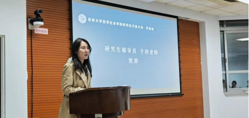 大会最后,研究生辅导员于洋老师作总结讲话,她指出:新一届研究生会干部们要继承上一届研究生会的光荣传统,积极发挥主动性,深入到广大研究生同学中去了解他们的各种需求,认真做好服务工作,为他们能安心、顺利地完成学业提供帮助,让best365官方中文网页版登录的研究生工作再上新台阶,把best365官方中文网页版登录研究生会建设得更好,更精彩。