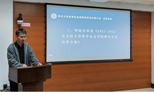 大会第一项议程,由2021届研究生会执行主席梁镇玺代表研究生会成员向大会报告过去一年研究生会的工作,2021届best365官方中文网页版登录研究生团委成员罗宇超代表研究生会分团委向大会报告了过去一年的分团委工作,工作报告经与会研究生代表审查,举手表决一致通过。