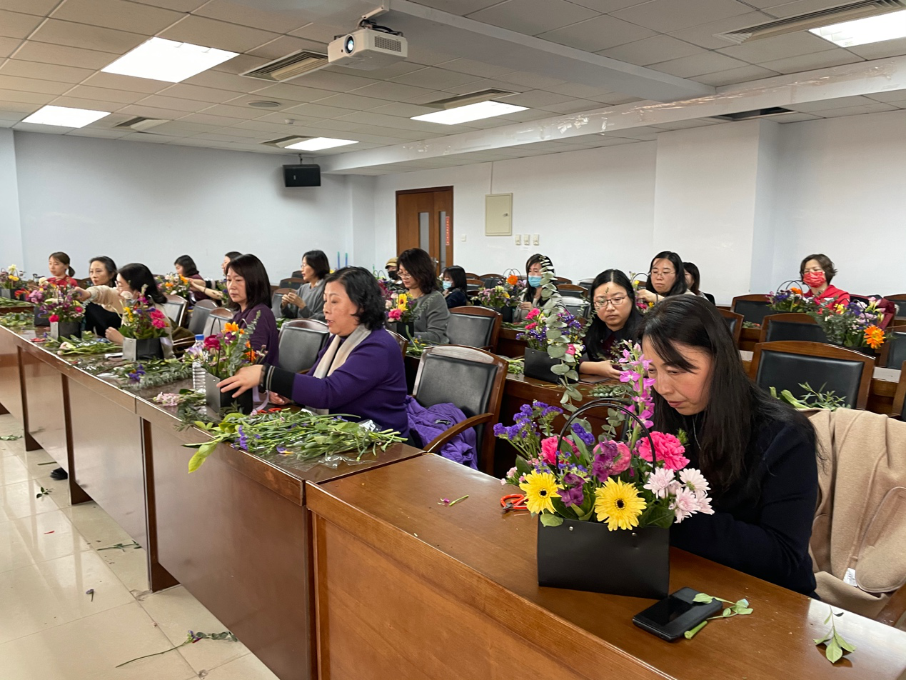 阳春三月,花香四溢,第111个国际妇女节如期而至。3月9日下午,在best365官方中文网页版登录妇委会和工会的组织下,best365官网在东荣大厦904会议室举办了“情暖三月 花漾哲社”主题插花艺术鉴赏活动。学院30余名教职工参加了本次活动。