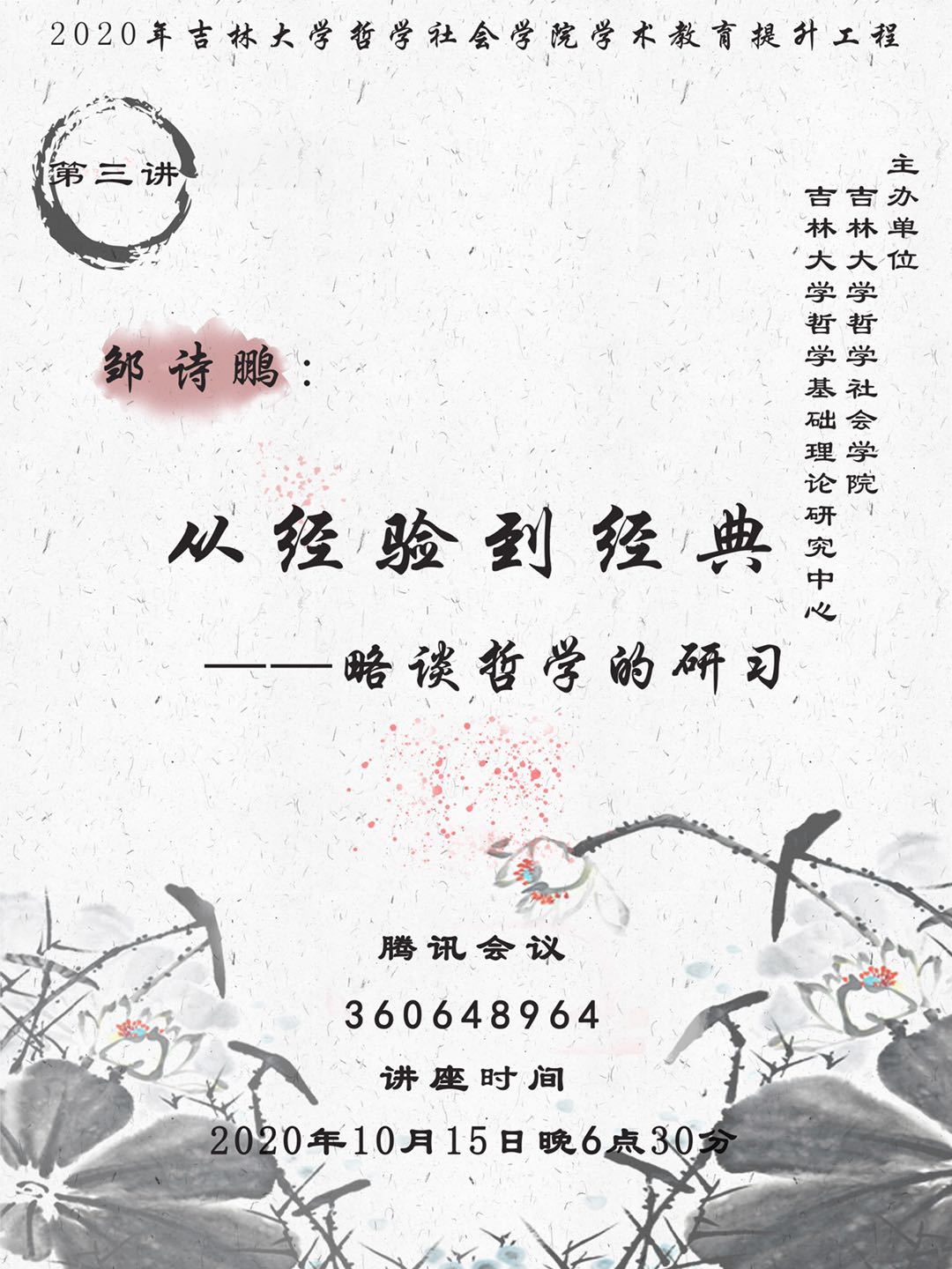 2020年best365官方中文网页版登录学术教育提升工程第三讲:从经验到经典——略谈哲学的研习 邹诗鹏