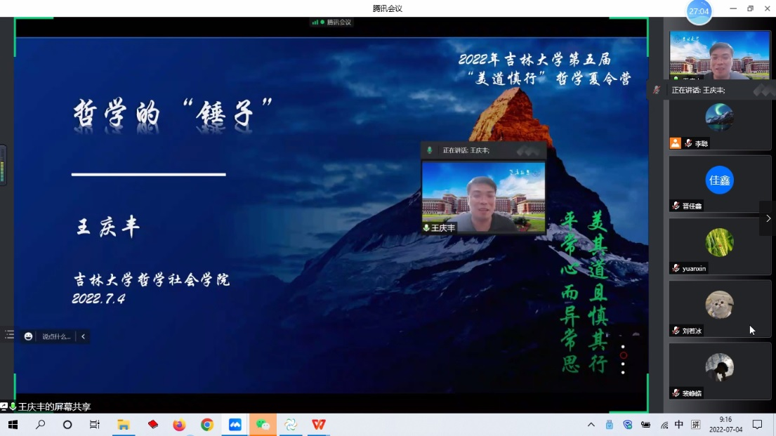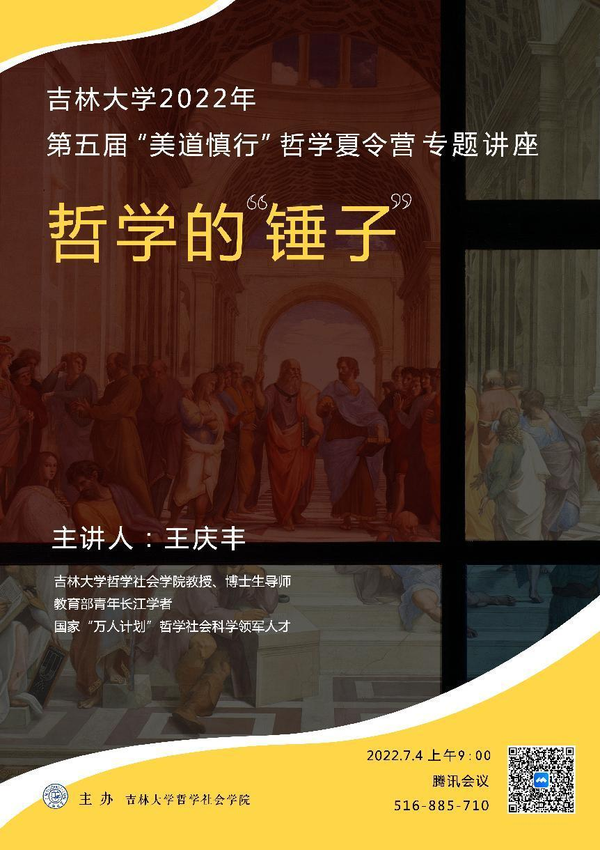 2022年7月4日上午,国家级青年人才、哲学社会科学领军人才、best365官方中文网页版登录哲学基础理论研究中心专职研究员王庆丰教授,在线为参加best365官方中文网页版登录2022年“美道慎行”哲学夏令营的全国各高校优秀学子们作了以“哲学的‘锤子’”为题的学术讲座。本次报告由哲学系党支部李聪书记主持。